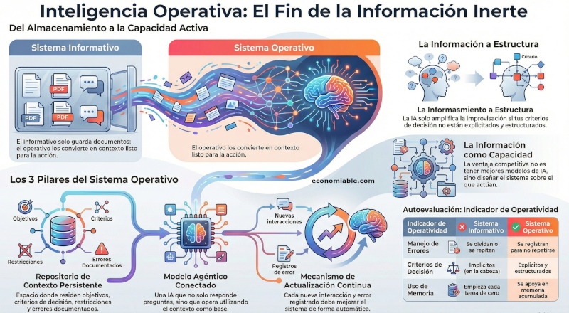 La verdadera diferencia en los próximos años no estará en quién tenga acceso a mejores modelos. Esos modelos estarán disponibles para todos. La diferencia estará en quién haya construido un sistema de Inteligencia Operativa donde su conocimiento pueda operar de forma continua, donde el contexto se adapta y mejora. No se trata de usar más tecnología, sino de diseñar mejor el sistema sobre el que esa tecnología actúa.